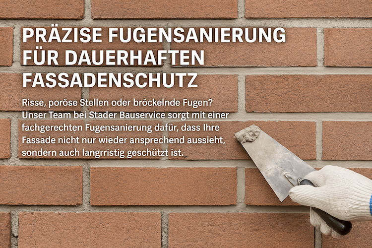 Verwitterte oder beschädigte Fugen sind nicht nur ein optisches Problem – sie gefährden langfristig die Bausubstanz. Bei Stader Bauservice setzen wir auf präzise Fugensanierung, um Ihr Mauerwerk vor Feuchtigkeit, Frostschäden und Wärmeverlust zu schützen. Durch sorgfältiges Entfernen der alten Fugen und das fachgerechte Verfugen mit hochwertigen Materialien sorgen wir für neue Stabilität und ein gepflegtes Gesamtbild.